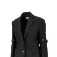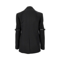 Blazer made from recycled polyester gabardine, enriched with sleeves adjustable leather belts with silver-finished metal logo buckle. Single-breasted buttoning, notched lapel collar, three welt pockets, chest pocket and cuffs split. Regular cut with rear split and structured shoulders. Lined. DETAILS Codice Modello: COPV37F3004 Stagione: FW25 Materiale: 100% REC PL Made in: Portugal Sku: 26730 Brand: COPERNI