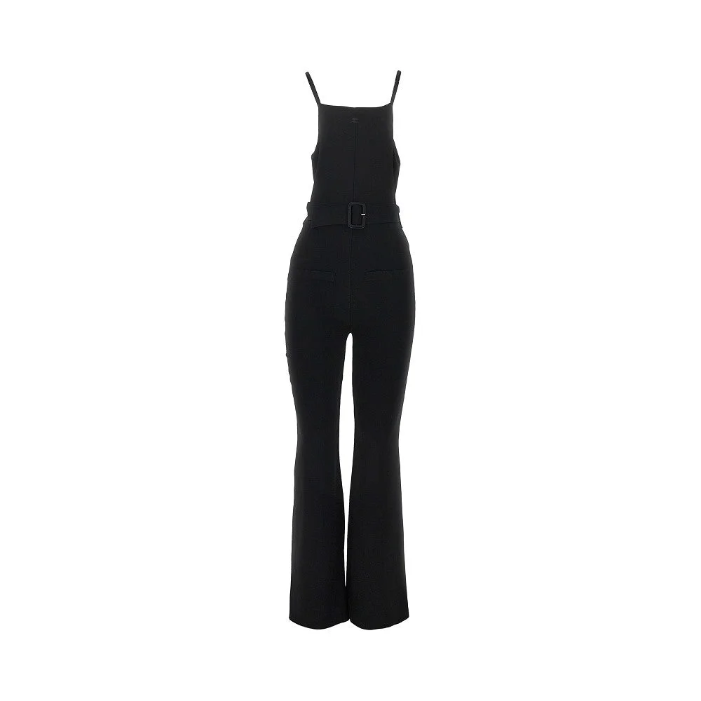 Jumpsuit made from viscose-blend knitted fabric, equipped with matching belt with knit-covered buckle. Thin straps, squared neckline, tone-on-tone AC logo embroidery at front and decorative welt pockets. Fitted silhouette with flared leg. Conncealed zip and hook closure at back. DETAILS Model code: 126MCB049FI0063 Color code: 9999 Season: SS26 Material: 83% VI, 17% PL Made in: Portugal Sku: 31924 Color: Black Brand: COURREGES