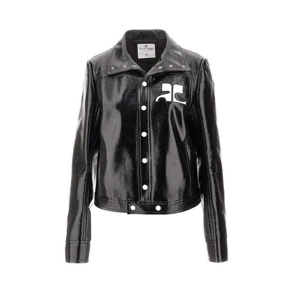 Iconic short jacket made from stretch fabric with vinyl effect coating, enriched with faux leather logo inlay on the chest. Front closure with enameled press-studs. Welt pockets with concealed press-stud closure. Lined. Slim fit. DETAILS Codice Modello: PERCBL017VY0014 Stagione: FW25 Materiale: 88% CO, 10% PU, 2% EA Made in: Slovakia Sku: 24252 Brand: COURREGES