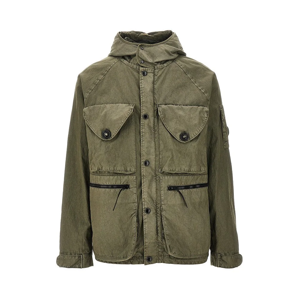 Hooded jacket made from Panama-R, a recycled nylon oxford fabric, featuring internal hood in Taylon P with integrated lenses. Four front pockets and a patch pocket on the left sleeve with signature Lens detail. Adjustable cuffs. DETAILS Model code: 20CMOW072A Color code: 610 Season: SS26 Material: 100% PA Made in: Bulgaria Sku: 31149 Color: Green Brand: CP COMPANY