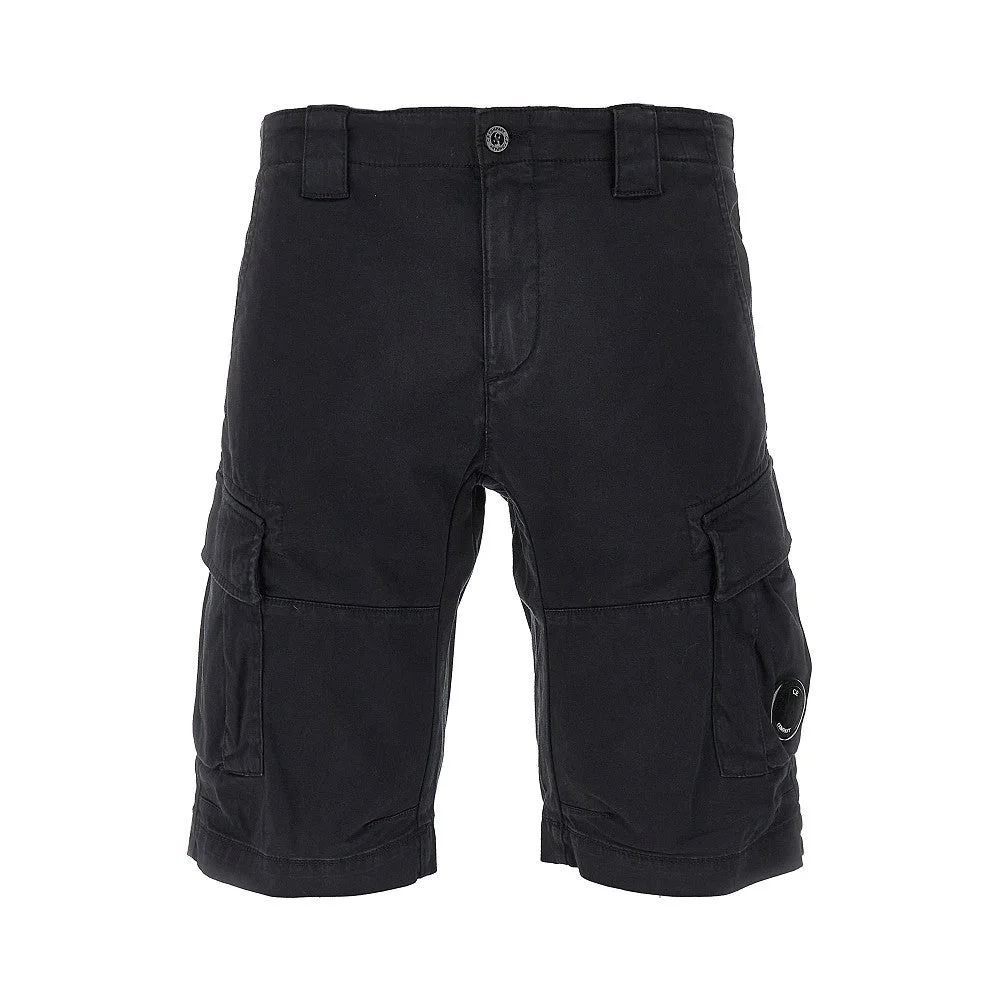Shorts made from pure cotton Stretch Sateen, featuring cargo pockets with signature lens detail on the left one. Belt loops, zip fly and button closure. Side slanted pockets and rear welt ones with press-stud. Regular fit. DETAILS Model code: RSCMBE746A Color code: 888 Season: SS26 Material: 98% CO, 2% EA Made in: Tunisia Sku: 31199 Color: Blue Brand: CP COMPANY