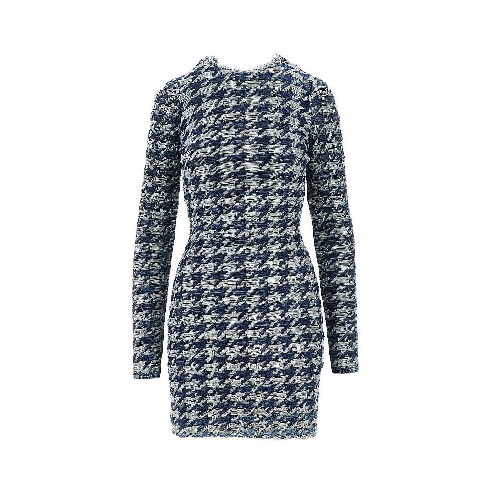 Long-sleeved crewneck mini dress made from pure cotton fabric, featuring two-tone wavy motif created with laddered yarn. Zip closure at back. Slim fit. Unlined. DETAILS Codice Modello: A21446 Stagione: FW25 Materiale: 100% CO Made in: Italy Sku: 27059 Brand: DIESEL