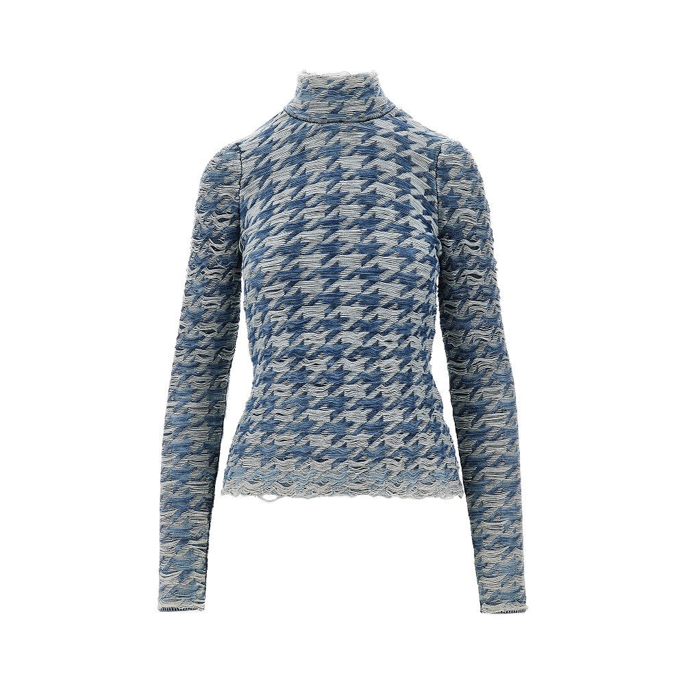 Long-sleeved top made from pure cotton fabric, featuring two-tone wavy motif created with laddered yarn. Mock-turtleneck and zip closure at back. Slim fit. DETAILS Codice Modello: A21444 Stagione: FW25 Materiale: 100% CO Made in: Italy Sku: 27058 Brand: DIESEL