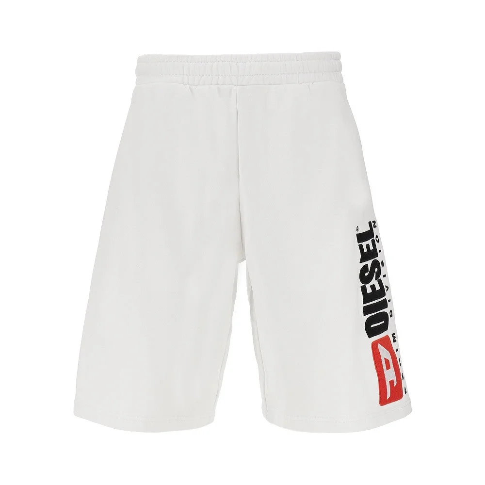 Shorts made from cotton french terry, enriched with "Denim Division" embroidery on the left leg. Adjustable elasticated waist with internal drawstring. Side welt pockets and rear patch one. Regular fit. DETAILS Model code: A20027 Color code: 100 Season: SS26 Material: 100% CO Made in: Bangladesh Sku: 29488 Color: White Brand: DIESEL
