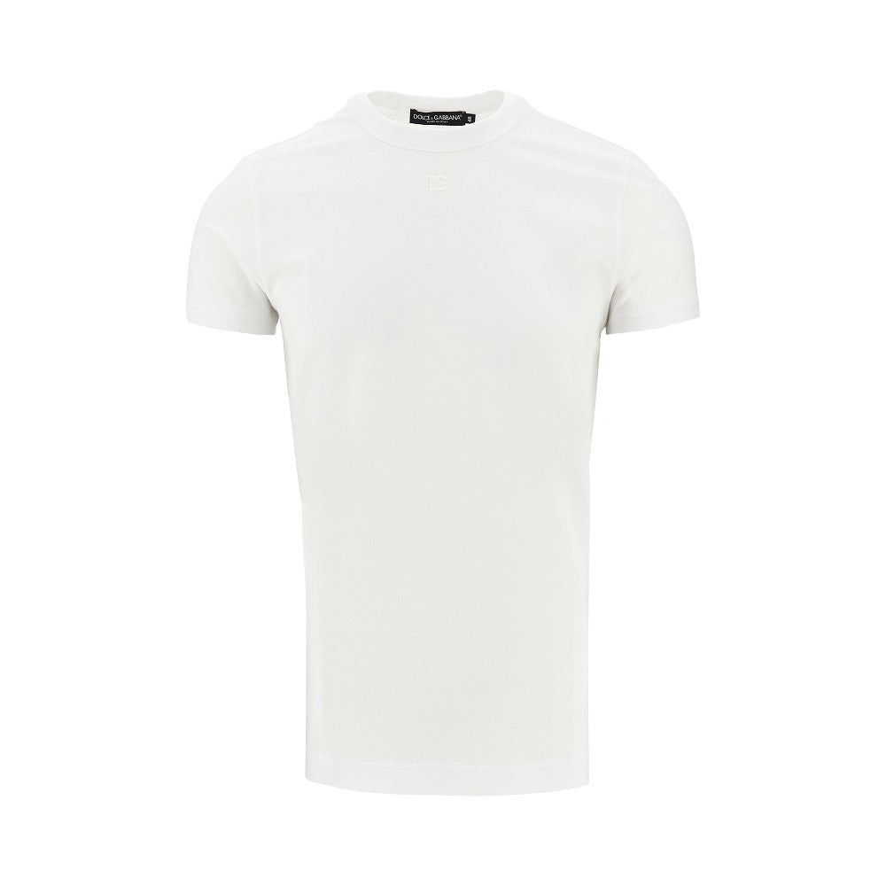 Short-sleeved T-shirt made from stretch cotton jersey, enriched with tone-on-tone DG logo embroidery at front. Micro ribbed crewneck. Regular fit. DETAILS Codice Modello: G8SX0Z Stagione: FW25 Materiale: 90% CO, 10% EA Made in: Italy Sku: 23839 Brand: DOLCE&GABBANA