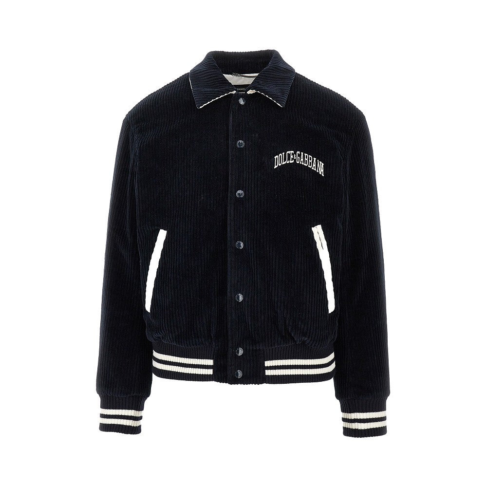 Bomber jacket made from cotton corduroy with polyester padding, enriched with 'DG University' crest embroidery at back and lettering logo embroidery on the chest, Press-studs closure, pointed collar and side welt pockets. Ribbed knit cuffs and bottom hem. Quilted nylon lining. DETAILS Codice Modello: G9BPXZ Stagione: FW25 Materiale: 100% CO Made in: Italy Sku: 27619 Brand: DOLCE&GABBANA