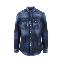 Shirt made from stretch cotton denim with fadings and creased effect. Press-studs closure, classic pointed collar, cuffs with press-stud, chest patch pockets with press-studs flap and rounded bottom hem. Relaxed fit. DETAILS Codice Modello: S74DM0955 Stagione: FW25 Materiale: 98% CO, 2% EA Made in: Italy Sku: 23806 Brand: DSQUARED2