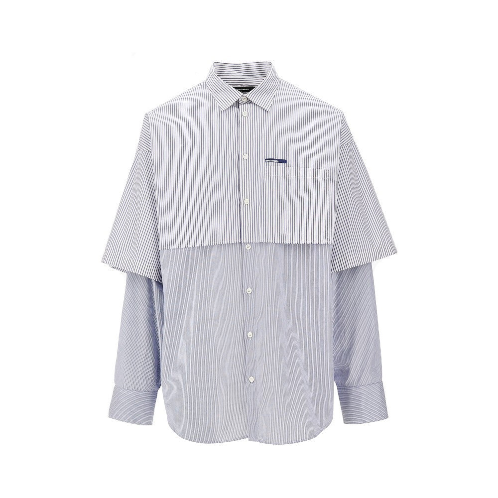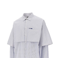 Oversized shirt featuring layered construction which simulates a cropped short-sleeved shirt in striped poplin worn over a classic long-sleeved shirt in lightweight Oxford fabric with micro striped pattern. Classic pointed collar, front buttons closure, chest patch pocket and two-button cuffs. DETAILS Codice Modello: S74DM0947 Stagione: FW25 Materiale: 100% CO Made in: Italy Sku: 27213 Brand: DSQUARED2