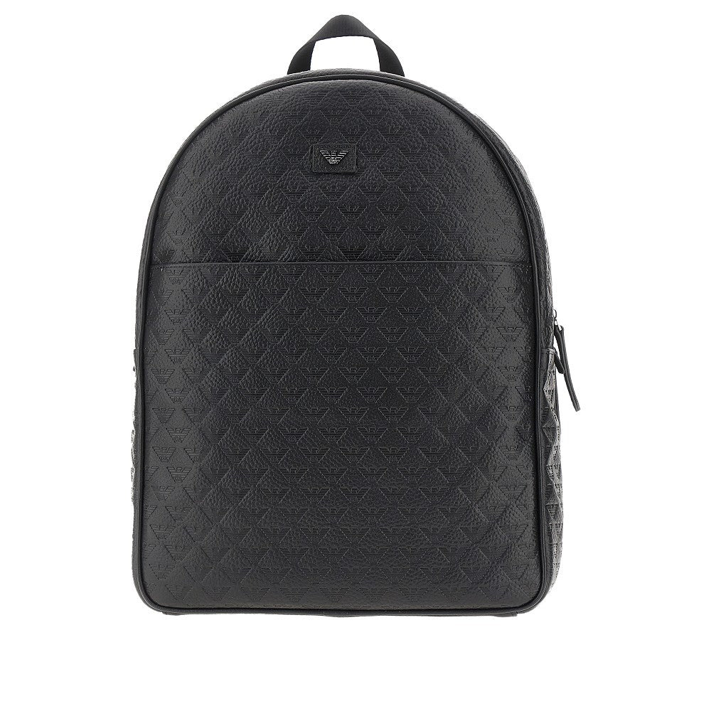 Backpack made from grained leather with all-over embossed Eagle motif, enriched with ruthenium-finished metal Eagle detail at front. Neoprene back, webbing top handle and adjustable fabric shoulder straps. Front split pocket. Rear flat compartment and main compartment with zip closure. Nylon lining. DETAILS Height: 40 cm Depth: 12 cm Width: 29 cm Codice Modello: EM001678 Stagione: FW25 Materiale: 100% LH Made in: Bulgaria Sku: 24078 Brand: EMPORIO ARMANI