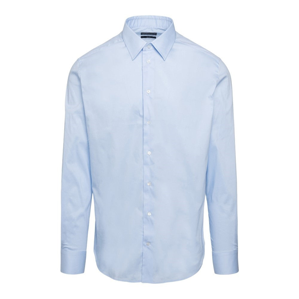 Classic shirt in light blue with collar, button closure, long sleeves with cuffs and curved hem. DETAILS Codice Modello: H31CS5 Brand: EMPORIO ARMANI Stagione: FW23 Materiale: 76% cotone, 21% poliammide, 3% elastan Made in: Italy Sku: 6049