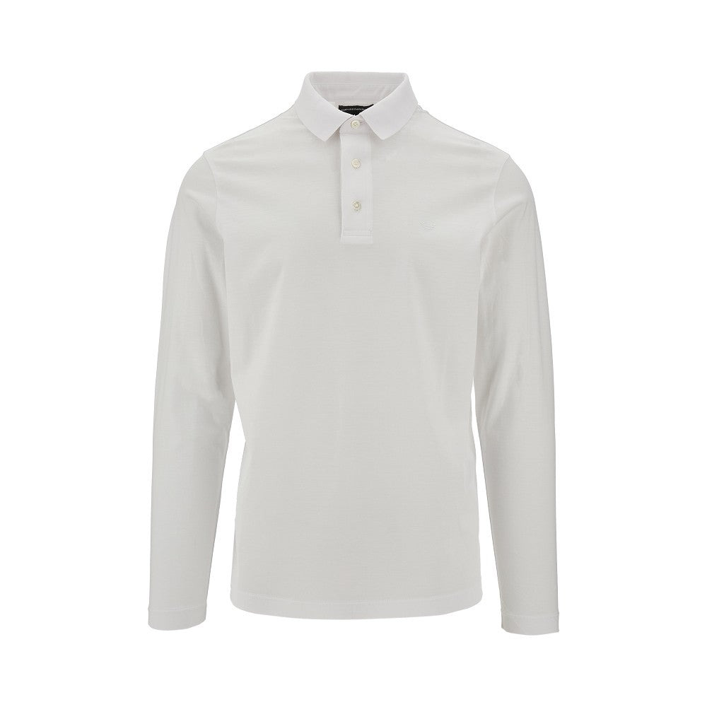 Long-sleeved polo shirt crafted in lightweight cotton-blend jersey with tone-on-tone rubberized logo print on the chest. Micro ribbed collar. Straight and regular fit with side splits on the bottom. DETAILS Codice Modello: 8N1F97 Brand: EMPORIO ARMANI Stagione: SS24 Materiale: 70% LY, 30% CO Made in: Vietnam Sku: 8510