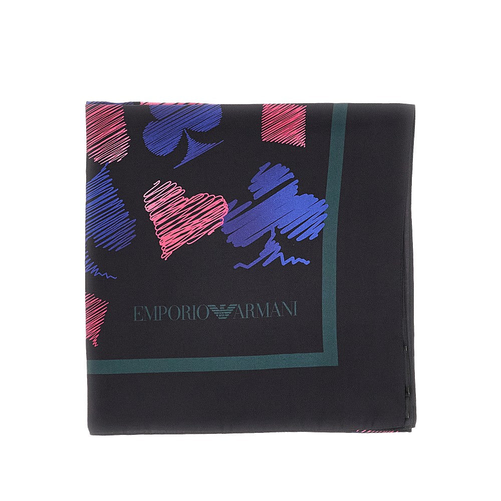 Squared scarf made from pure silk twill with playing card inspired print. DETAILS Height: 120 cm Width: 120 cm Model code: EW003172 Color code: FC026 Season: FW25 Material: 100% SE Made in: Italy Sku: 28591 Color: Black Brand: EMPORIO ARMANI