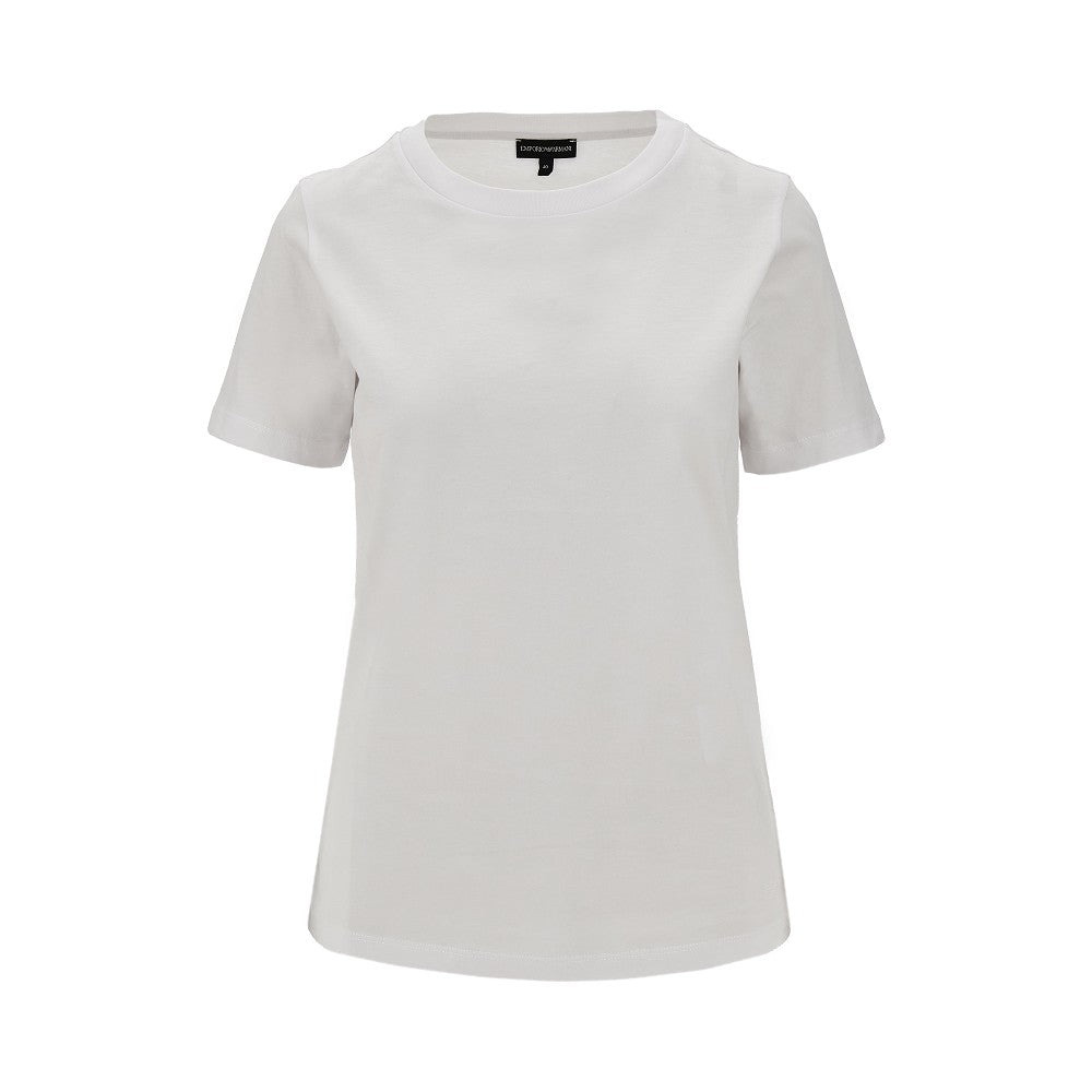 Short-sleeved t-shirt made from pure cotton jersey, enriched with tone on tone Eagle logo embroidery on the hem. Micro-ribbed crewneck. Regular fit. DETAILS Codice Modello: 8N2T92 Stagione: SS25 Materiale: 100% CO Made in: Bulgaria Sku: 20220 Brand: EMPORIO ARMANI
