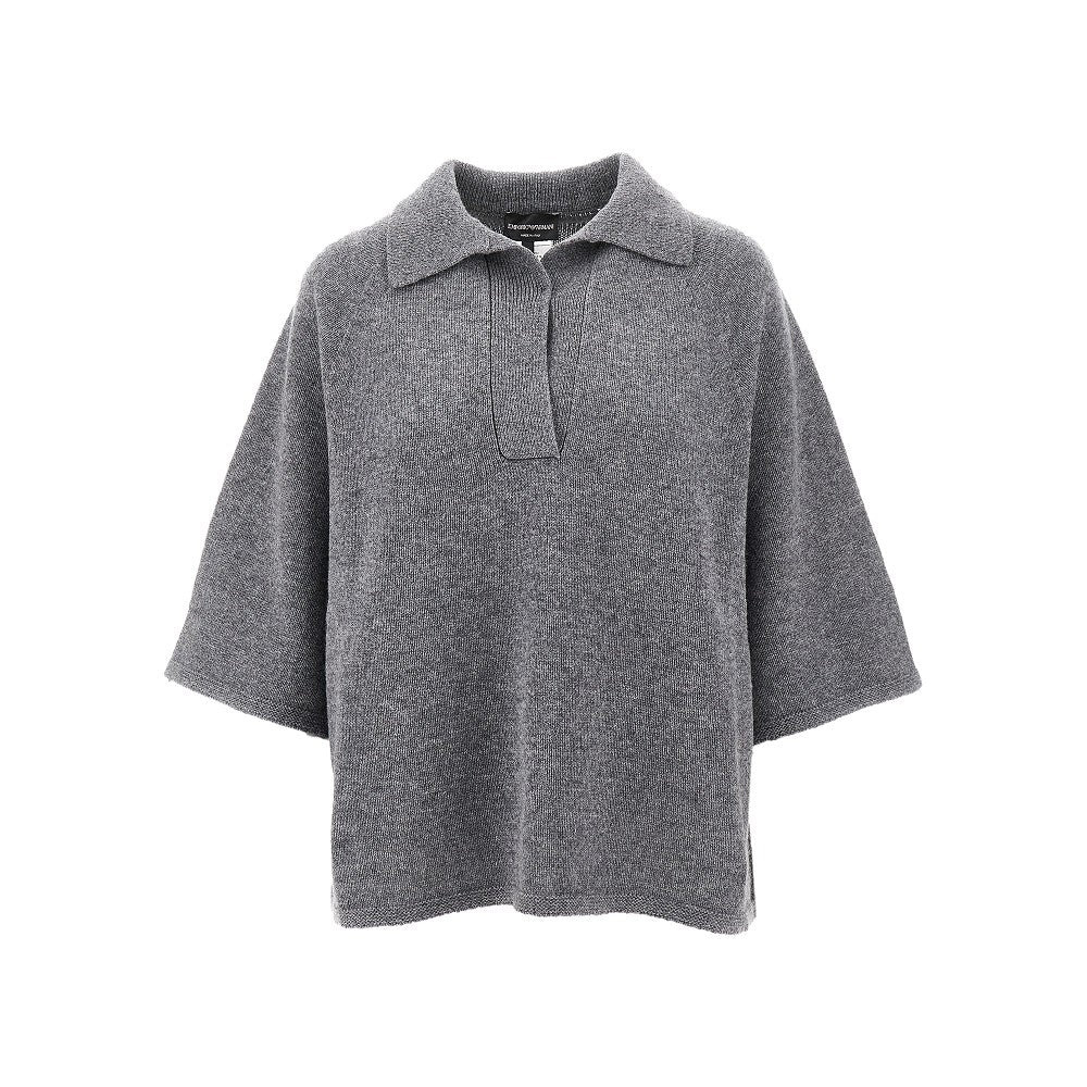 Sweater made from soft wool and cashmere blend yarn, featuring polo shirt like collar with V-shaped opening and wide elbow-length kimono sleeves. Relaxed fit. DETAILS Codice Modello: EW003197 Stagione: FW25 Materiale: 90% WV, 10% WS Made in: Italy Sku: 25665 Brand: EMPORIO ARMANI