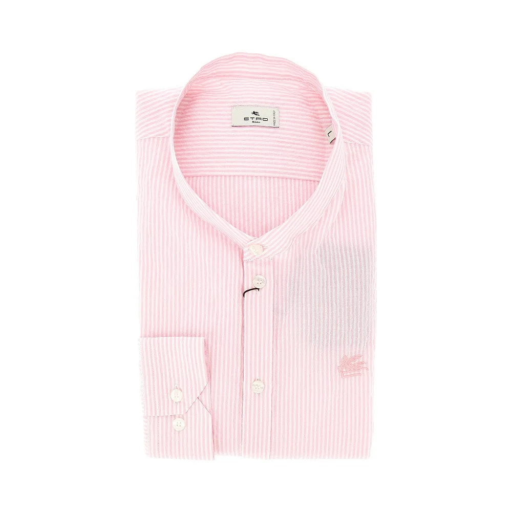 Striped shirt made from pure cotton seersucker. Tone-on-tone logo embroidery on the chest. Guru collar, branded buttons closure and rounded-off cuffs with two buttons. Rounded hem. Regular fit. DETAILS Model code: MRIC0067 Color code: S9870 Season: SS26 Material: 100% CO Made in: Italy Sku: 31069 Color: Pink Brand: ETRO