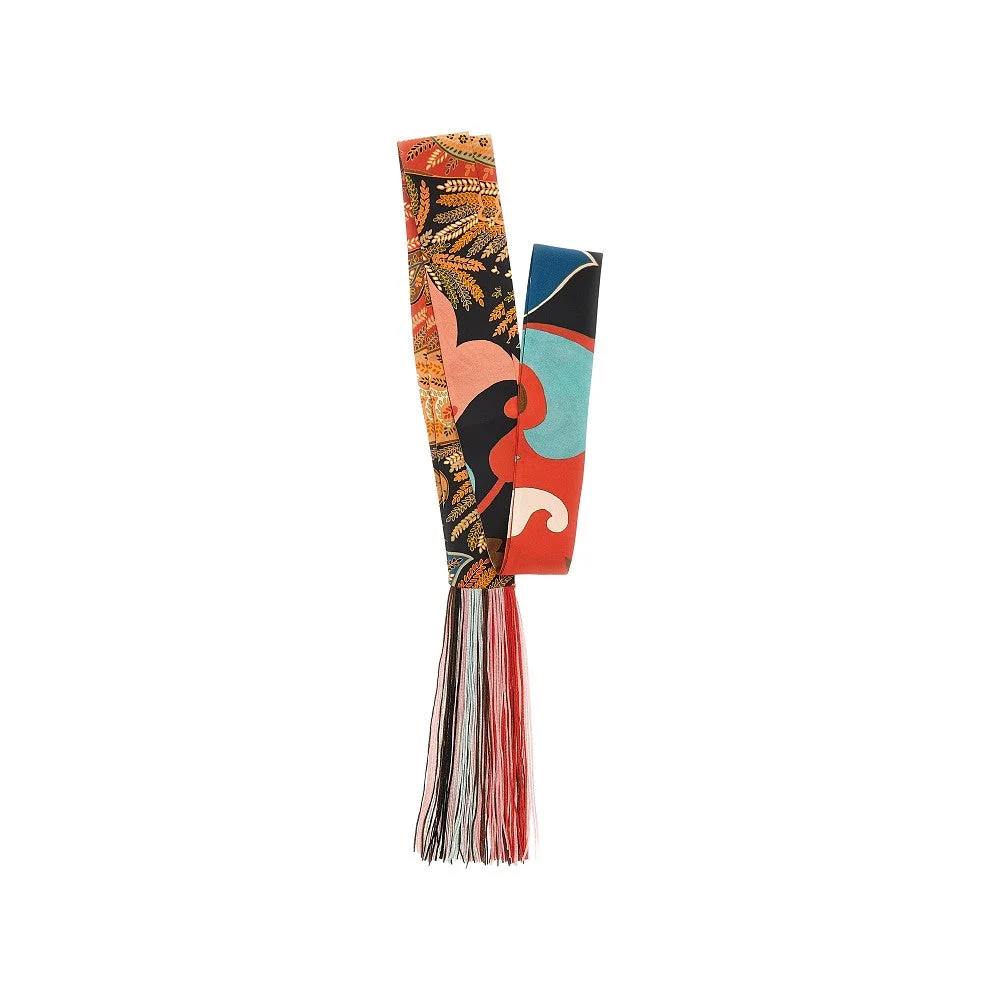 Paisleyna made from pure silk twill with multicoloured floral Paisley motif, enriched with fringed trimming at ends. DETAILS Height: 180 cm Width: 5 cm Model code: WATA0044 Color code: X0861 Season: SS26 Material: 100% SE Made in: Italy Sku: 33300 Color: Multicolor Brand: ETRO