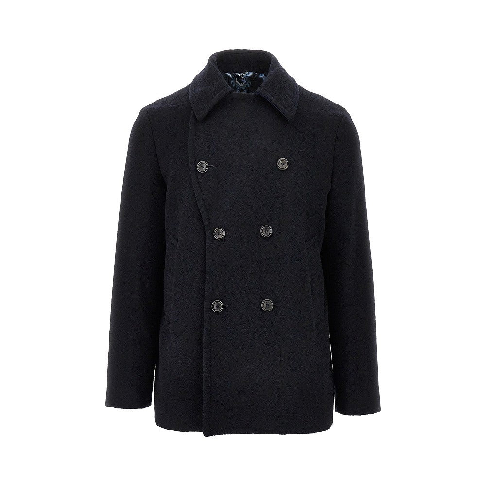 JACQUARD WOOL DOUBLE-BREASTED PEACOAT