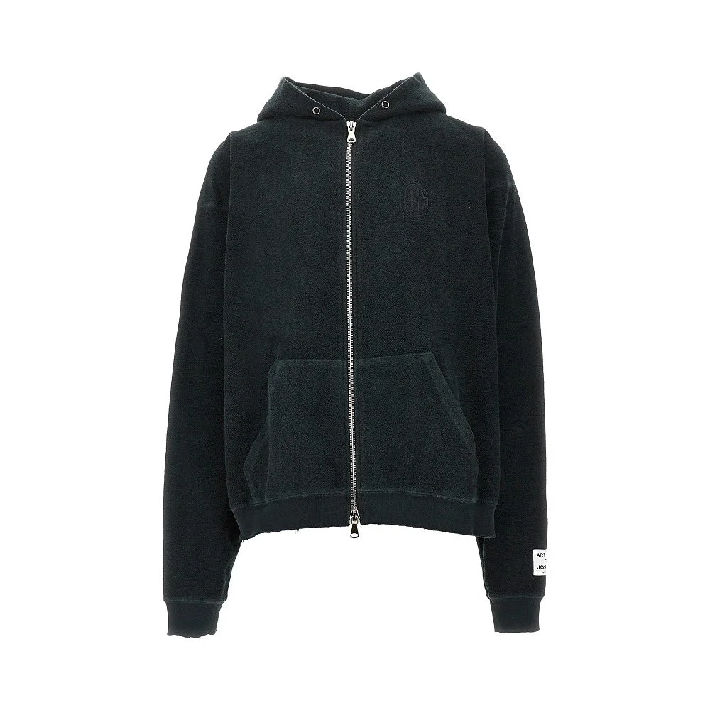 Sweatshirt made from cotton jersey with brushed face, enriched with tone-on-tone Chateau Josue logo embroidery on the chest and on the back. Two-way zip closure, hood and kangaroo pockets. Micro ribbed cuffs and bottom hem with raw-cut hem. Loose and relaxed fit. DETAILS Model code: DFZ-50038 Color code: WASHED BLACK Season: FW25 Material: 100% CO Made in: United States Sku: 30515 Color: Black Brand: GALLERY DEPT.