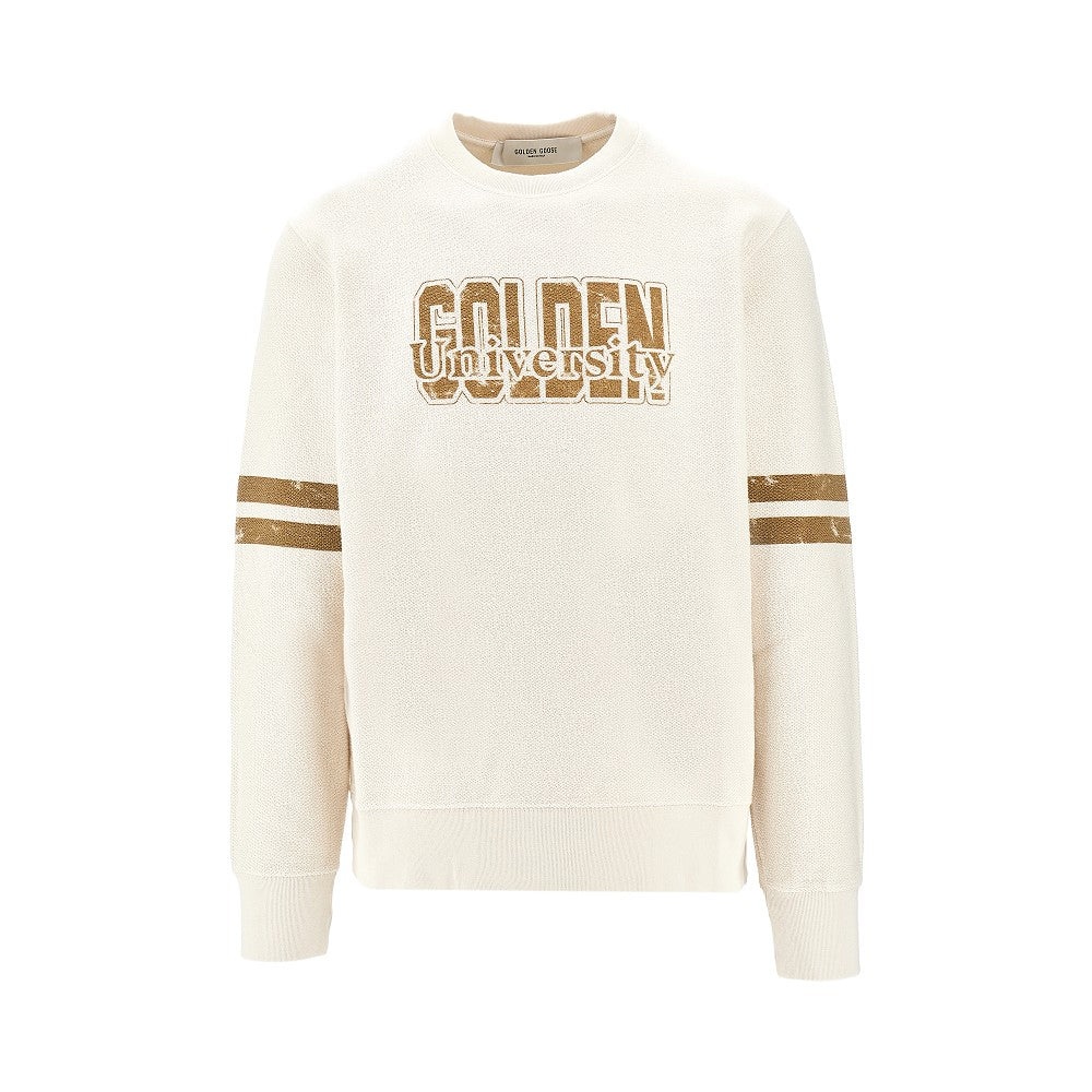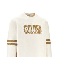Sweatshirt made from reversed cotton french terry, enriched with "Golden University" logo print at front and striped motif on the sleeves. Micro ribbed crewneck, cuffs and bottom hem. Regular fit. DETAILS Codice Modello: GMP01223 Stagione: FW25 Materiale: 100% CO Made in: Italy Sku: 23923 Brand: GOLDEN GOOSE