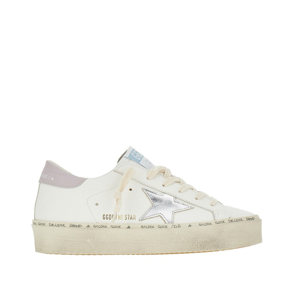 Sneakers made from leather with signature side star patch in laminated leather and contrasting heel tab. Lace-up closure, fabric logo label on the tongue and contrasting logo print on the heel tab. Terry lining, removable leather insole and rubber platform sole with repeated logo print on the edge. DETAILS Codice Modello: GWF00118 Stagione: SS25 Materiale: 100% LH Made in: Italy Sku: 17519 Brand: GOLDEN GOOSE