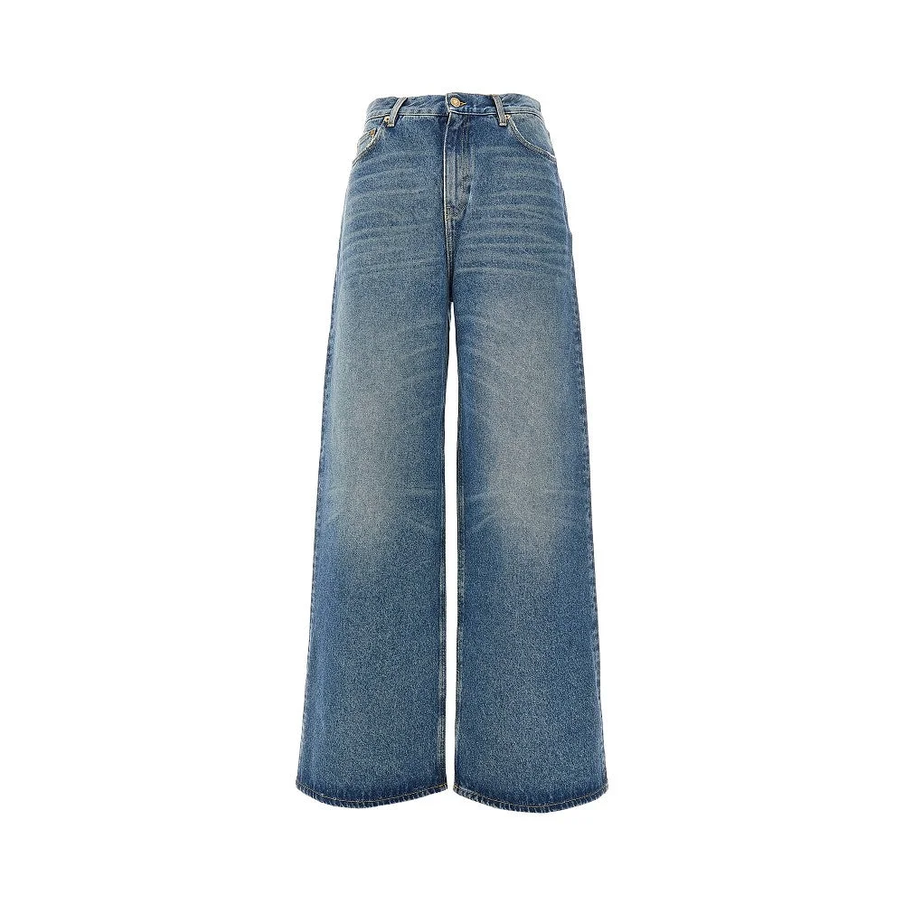 Five-pocket jeans made from medium-wash cotton denim with fadings and light distressed finishes. Loose and relaxed fit with wide leg. Belt loops, zip fly and button closure. Signature star-shaped studs at waist back. DETAILS Model code: GWP02079 Color code: 50100 Season: SS26 Material: 100% CO Made in: Italy Sku: 31050 Color: Blue Brand: GOLDEN GOOSE
