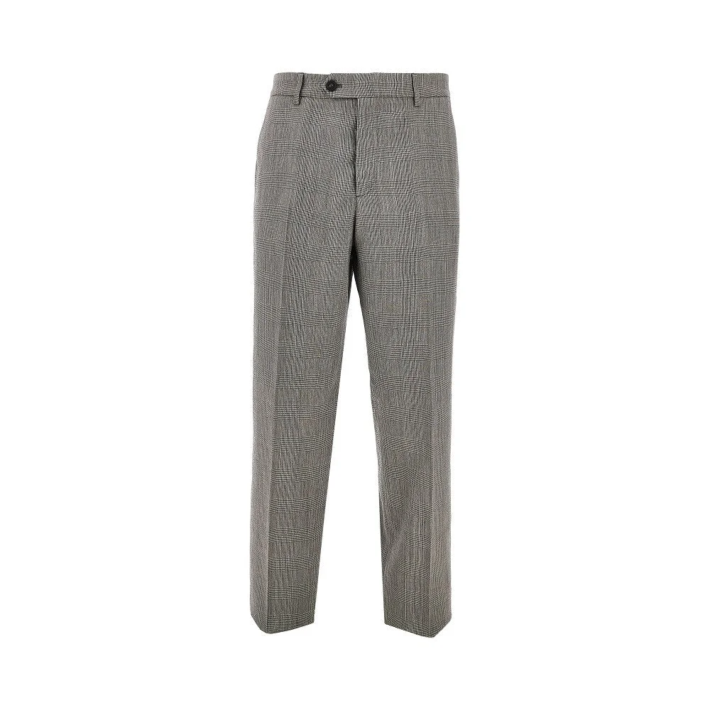 Pants made from Prince of Wales wool crepe. Regular waist with belt loops, zip fly, concealed hook and button closure. Side slanted pockets and rear welt ones with button. Slim fit. Signature star-shaped studs at back. DETAILS Model code: GMP02539 Color code: 60567 Season: SS26 Material: 100% WV Made in: Italy Sku: 30192 Color: Grey Brand: GOLDEN GOOSE