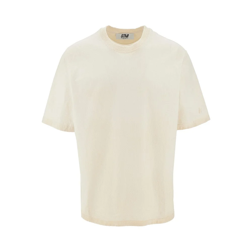 Short-sleeved T-shirt made from pure cotton jersey with vintage-effect treatment, enriched with contrasting "STAR" print on the back and raised star motif on the left sleeve. Micro ribbed crewneck. Relaxed fit. DETAILS Model code: GUP01873 Color code: 11616 Season: SS26 Material: 100% CO Made in: Italy Sku: 30226 Color: White Brand: GOLDEN GOOSE