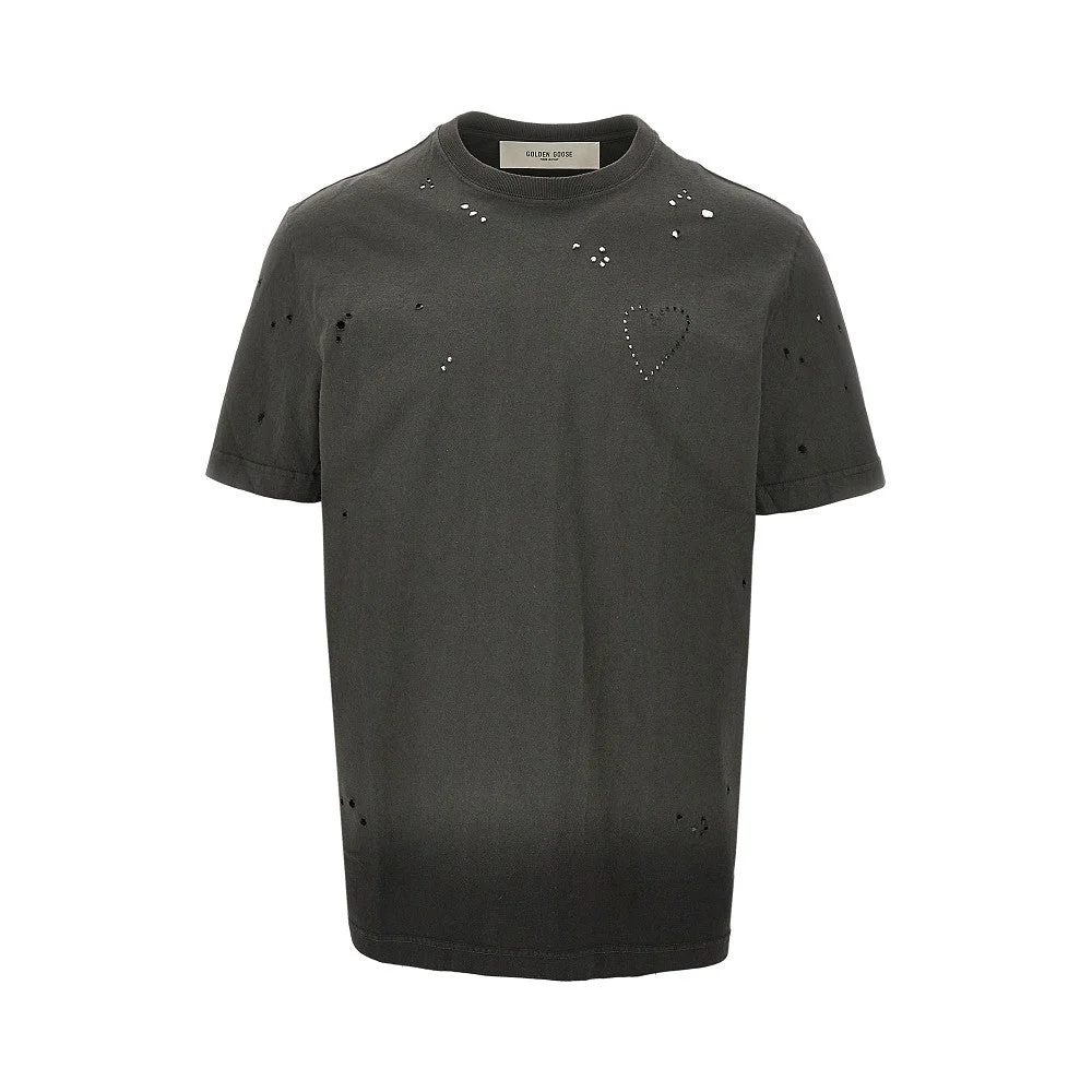 Men’s T-shirt in anthracite cotton jersey with perforated heart