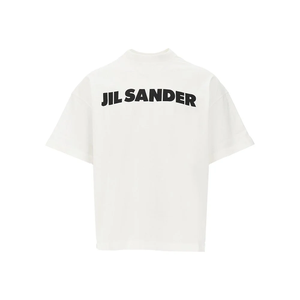 Short-sleeved T-shirt made from cotton jersey, enriched with contrasting logo print at front. Micro ribbed crewneck. Boxy fit with dropped shoulders. DETAILS Model code: J22GC0221 Color code: 102 Season: SS26 Material: 100% CO Made in: Italy Sku: 29759 Color: White Brand: JIL SANDER