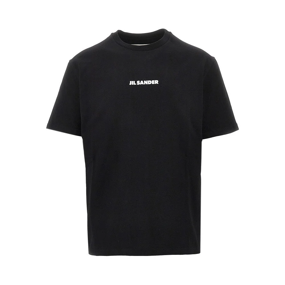 Short-sleeved T-shirt made from compact cotton jersey, enriched with contrasting lettering logo print at front. Micro ribbed crewneck. Regular fit. DETAILS Model code: J22GC0237 Color code: 001 Season: SS26 Material: 100% CO Made in: Italy Sku: 29755 Color: Black Brand: JIL SANDER