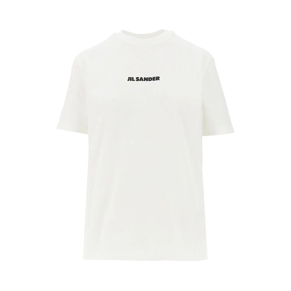 Short-sleeved T-shirt made from compact cotton jersey, enriched with contrasting lettering logo print at front. Micro ribbed crewneck. Regular fit. DETAILS Model code: J02GC0142 Color code: 102 Season: SS26 Material: 100% CO Made in: Italy Sku: 29703 Color: White Brand: JIL SANDER