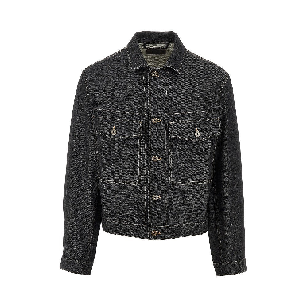 Jacket made from heavy raw denim with contrasting seams. Shirt collar, buttons closure, front patch pockets with button-down flap, one-button cuffs and adjustable tabs at waistband sides. Straight and regular cut with slightly dropped shoulders. DETAILS Codice Modello: OW1188 Stagione: FW25 Materiale: 100% CO Made in: Italy Sku: 27915 Brand: LEMAIRE