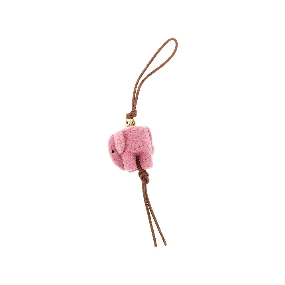 Elephant charm made from merino wool felt with leather tubular laces and gold-finished metal detail with engraved Anagram logo. DETAILS Model code: CA36232X32 Color code: 3900 Season: FW25 Material: 100% WE Made in: Spain Sku: 27670 Color: Pink Brand: LOEWE