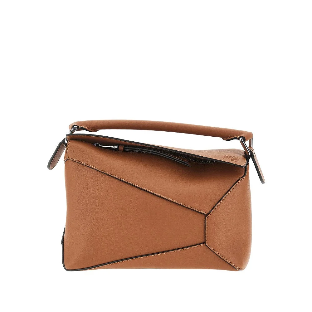 Small Puzzle Edge bag made from leather. Zip closure hidden by flap with debossed Anagram. Tubular handle. Detachable and adjustable shoulder strap. Zippered split pocket on the back. Canvas lining and one inner patch pocket. Silver-finished metalware. DETAILS Height: 16 cm Depth: 10,5 cm Width: 24 cm Model code: A510P60XAC Color code: 2530 Season: SS26 Material: 100% LH Made in: Spain Sku: 32649 Color: Beige Brand: LOEWE