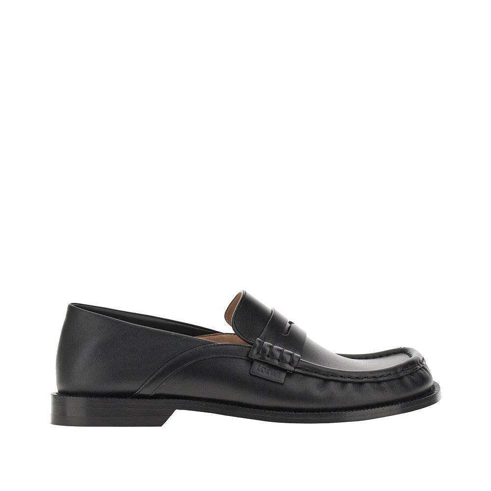 Loafers made from waxed soft leather, featuring wide signature asymmetric and squared toe. Penny bar and mini leather logo label on the outer side. Leather lining and insole. Leather sole with rubber inlays. DETAILS Codice Modello: M816290X47 Stagione: FW25 Materiale: 100% LH Made in: Italy Sku: 27599 Brand: LOEWE