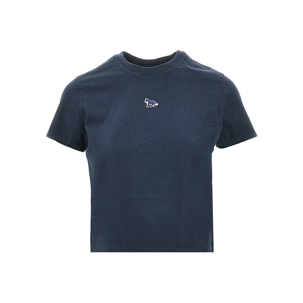 Short-sleeved cropped T-shirt made from cotton jersey, enriched with "Baby Fox" patch at front. Micro ribbed crewneck. Regular fit. DETAILS Model code: MW00105KJ7026 Color code: 0413 Season: SS26 Material: 100% CO Made in: Portugal Sku: 34154 Color: Blue Brand: MAISON KITSUNE