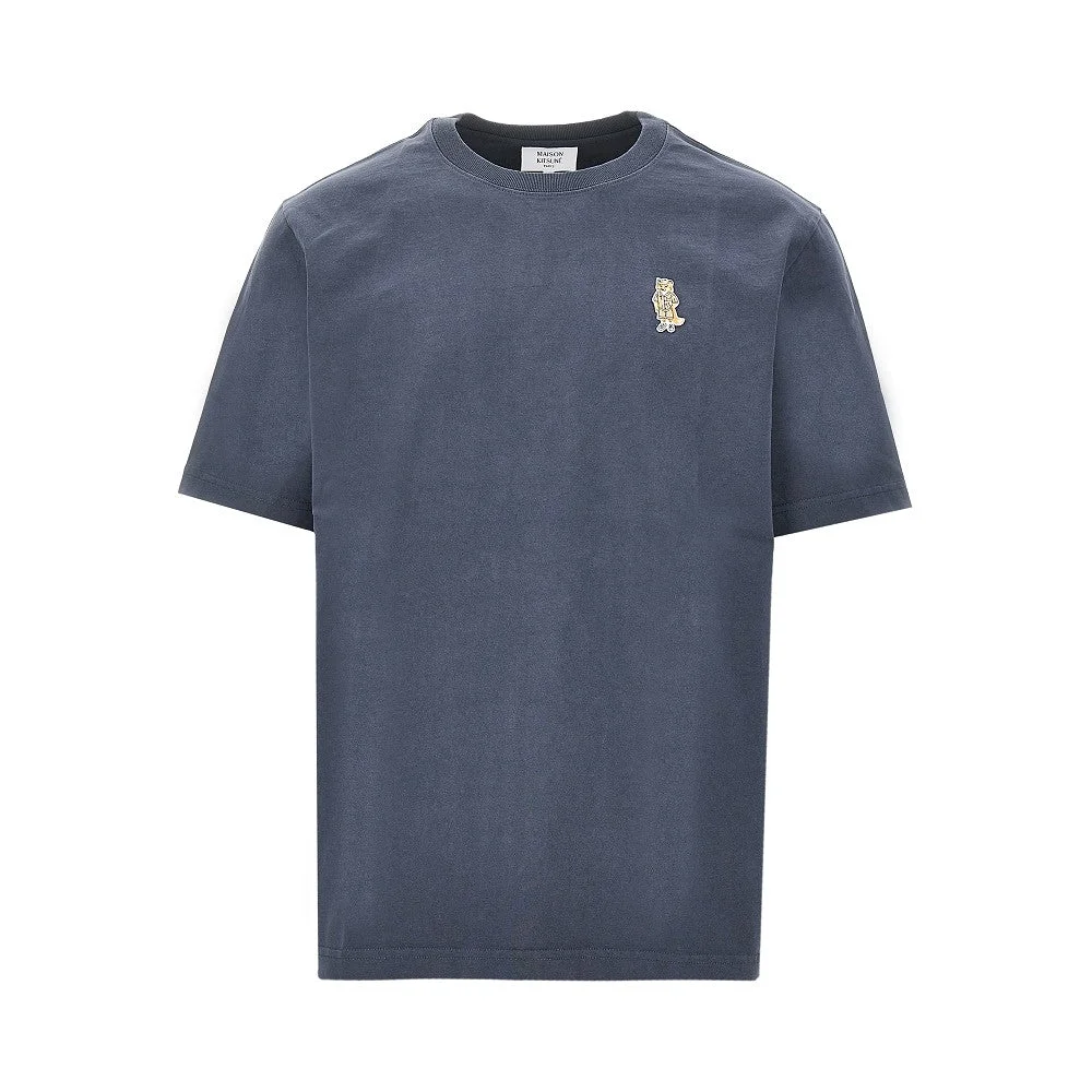 Short-sleeved T-shirt made from cotton jersey, enriched with "Dressed Fox" patch on the chest. Micro ribbed crewneck. Comfort fit. DETAILS Model code: QM00101KJ7025 Color code: 0422 Season: SS26 Material: 100% CO Made in: Portugal Sku: 34008 Color: Blue Brand: MAISON KITSUNE