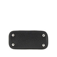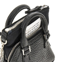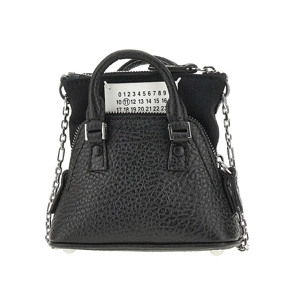 Micro 5AC bag made from grained leatgerm featuring foldable top panel in cotton-blend canvas with signature white leather logo label. Adjustable chain shoulder strap with leather insert. Zip closure. Silver-finished metalware. DETAILS Height: 9 cm Depth: 6 cm Width: 13 cm Model code: SB3WG0025 Color code: T8013 Season: SS26 Material: 100% LH, 79% CO, 15% PL, 6% AF Made in: Italy Sku: 30617 Color: Black Brand: MAISON MARGIELA