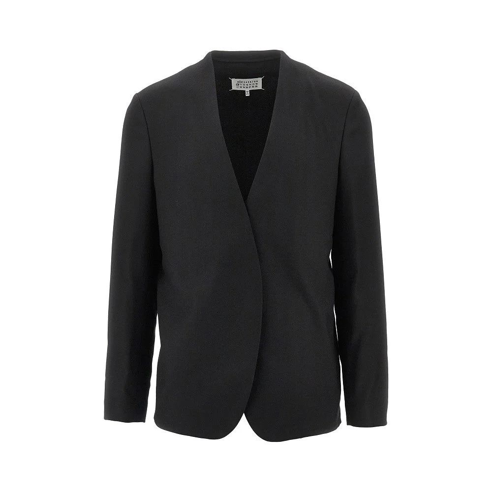 Jacket made from virgin wool gabardine, featuring minimal design with collarless V-neck and no closure at front. Straight and relaxed cut. Lined sleeves. Signature Four Stitches detail at back of neck. DETAILS Model code: S50BN0318 Color code: 900 Season: SS26 Material: 100% WV Made in: Italy Sku: 32387 Color: Black Brand: MAISON MARGIELA