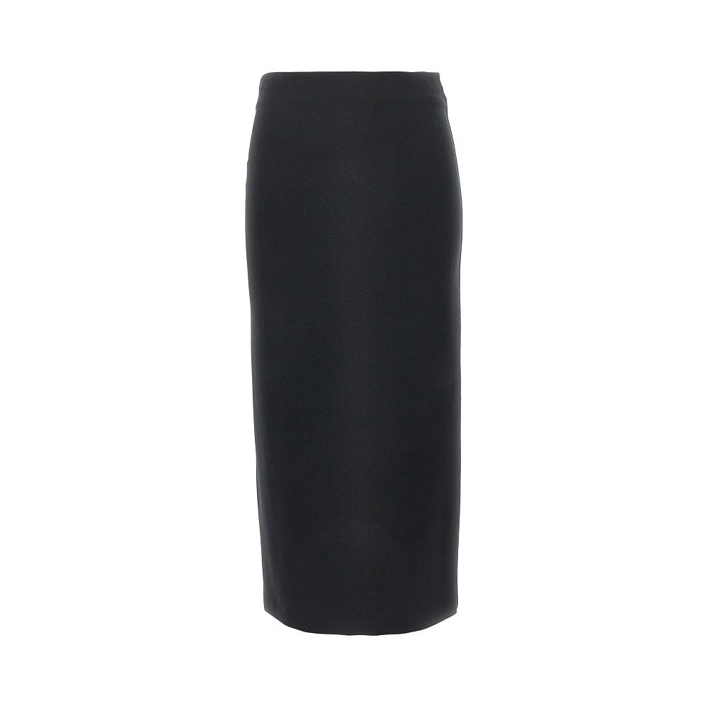 Midi skirt made from stretch viscose-blend compact crepe jersey, featuring slim fit with high-rise waist and rear middle slit. Concealed zip and hook closure at back. Lined. DETAILS Model code: 2611771033600 Color code: 003 Season: SS26 Material: 78% VI, 16% PA, 6% EA Made in: China Sku: 32958 Color: Black Brand: MAX MARA