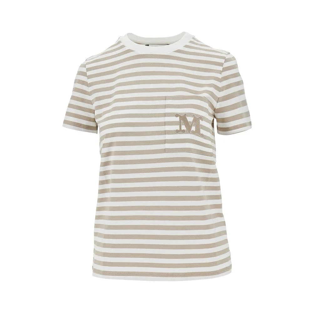 Short-sleeved T-shirt made from cotton jersey with striped pattern, enriched with chest patch pocket with embroidered monogram. Micro ribbed crewneck. Regular fit. DETAILS Model code: 2611941022600 Color code: 002 Season: SS26 Material: 100% CO Made in: China Sku: 33364 Color: Beige Brand: MAX MARA
