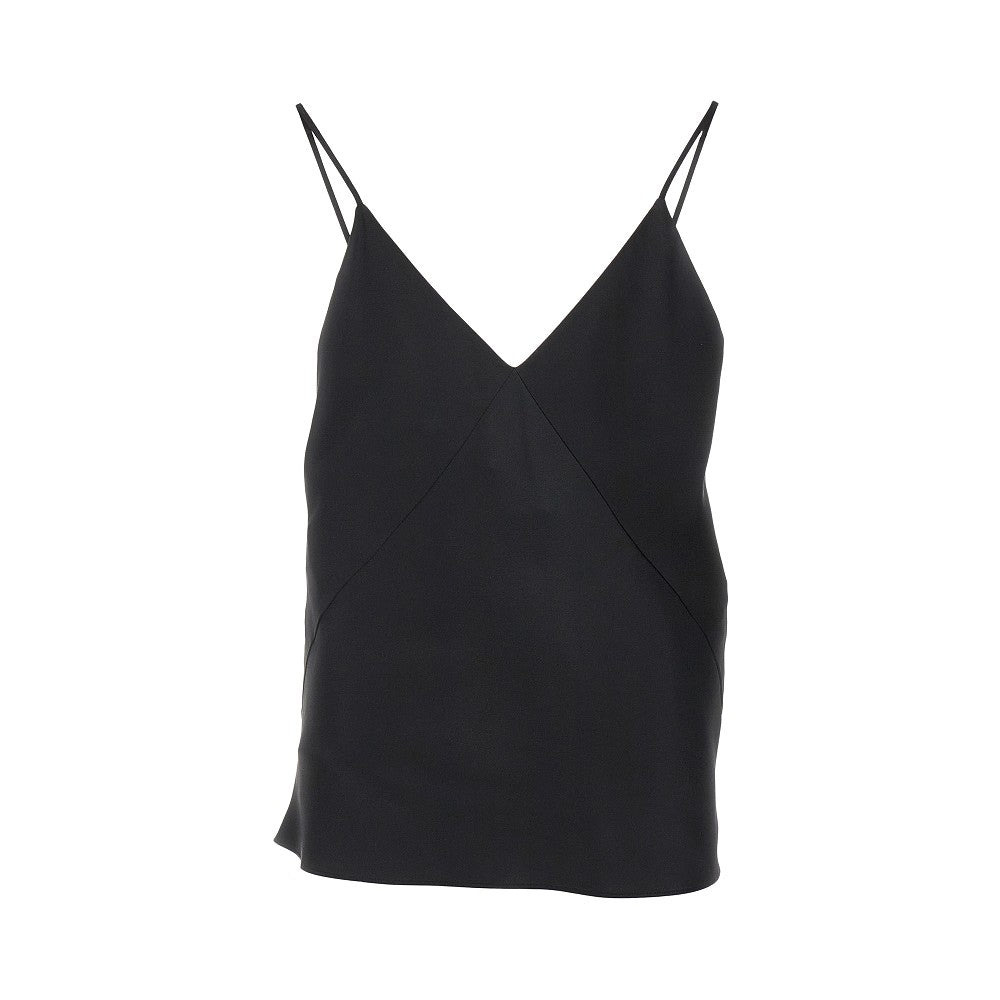 Sleeveless top made from soft and fluid silk satin, featuring V-neck and slanted seams on front. Slim straps. Lined. Regular fit. DETAILS Codice Modello: 2511161024600 Stagione: SS25 Materiale: 100% SE Made in: Italy Sku: 19890 Brand: MAX MARA