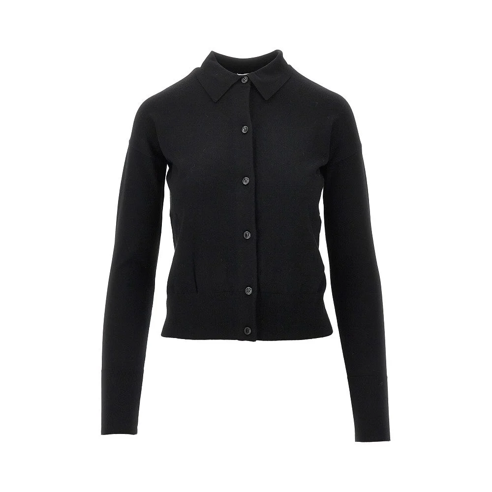 Cardigan made from stretch and fine wool-blend yarn, featuring shirt-like collar. Front buttons closure. Ribbed trimmings. Regular fit with dropped shoulders. DETAILS Model code: 2611341061600 Color code: 006 Season: SS26 Material: 78% WO, 18% PA, 4% EA Made in: China Sku: 29936 Color: Black Brand: MAX MARA