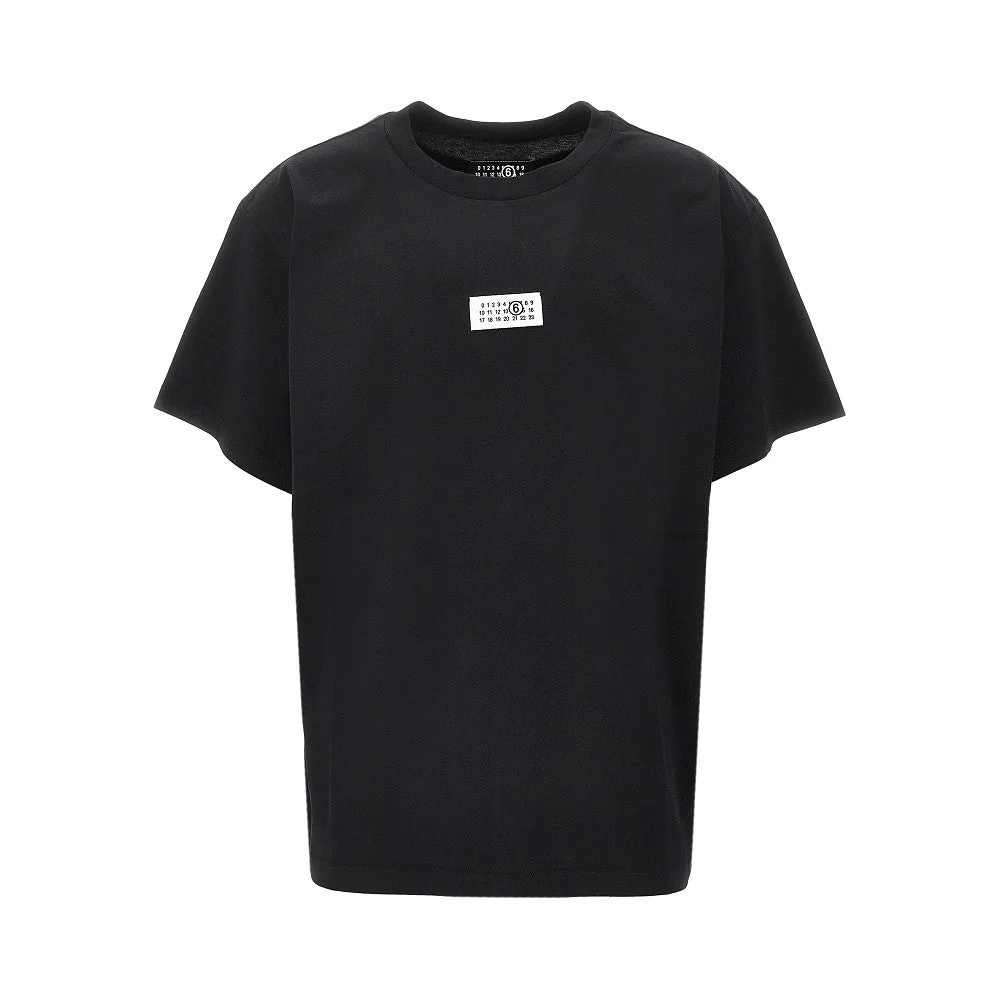 Short-sleeved T-shirt made from cotton jersey, enriched with signature white canvas Numeric logo label at front. Micro ribbed crewneck. Loose and relaxed fit with dropped shoulders. Signature white stitchline at back. DETAILS Model code: SH0GC0032 Color code: 900 Season: SS26 Material: 100% CO Made in: Portugal Sku: 30691 Color: Black Brand: MM6