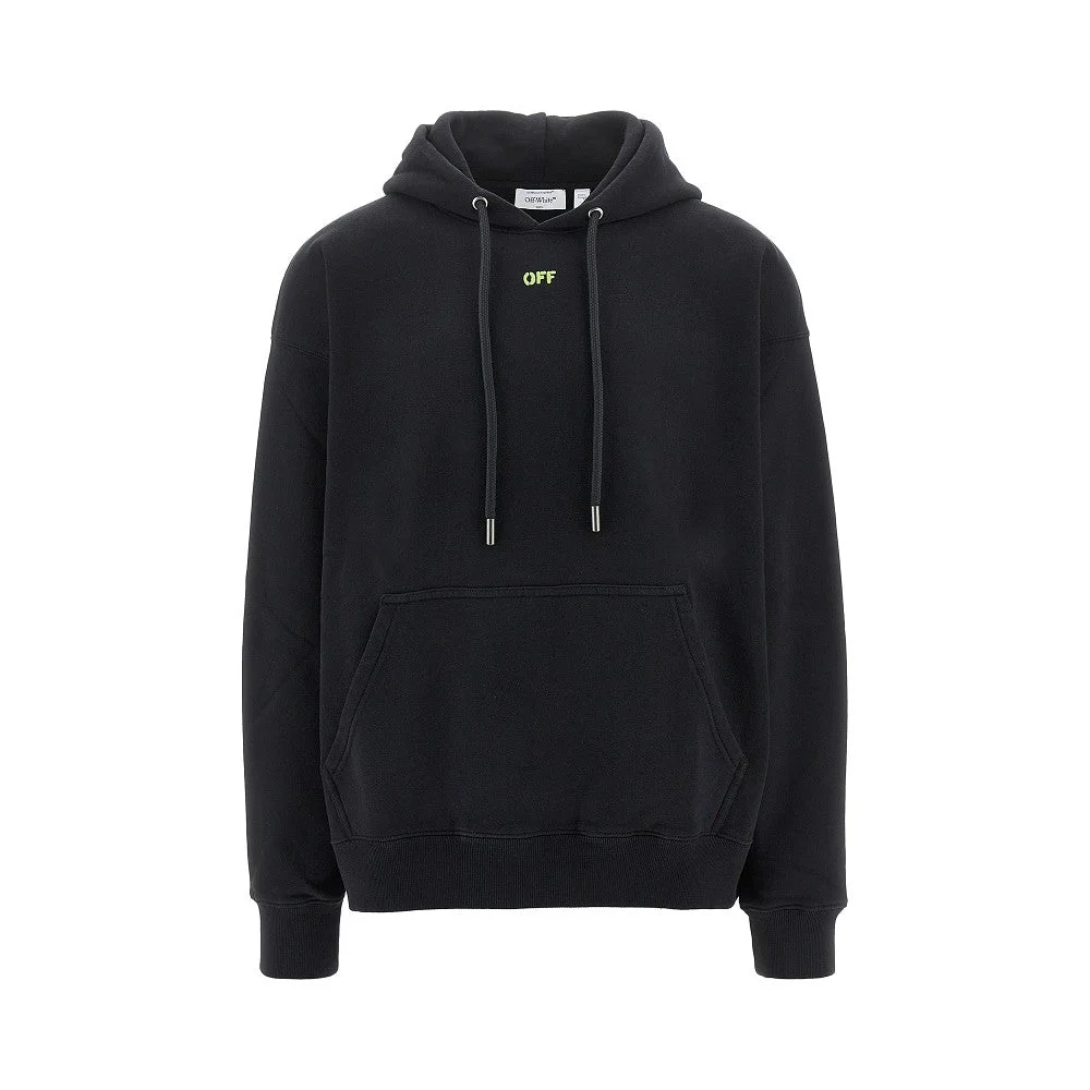 Sweatshirt made from cotton french terry, enriched with "Dark Slime Arrow" print on the back and "OFF" print at front. Hood with drawstring. Kangaroo pocket. Micro ribbed cuffs and bottom hem. Loose and relaxed fit with side slits at bottom hem. DETAILS Model code: 44MBB085S26F003 Color code: 001 Season: SS26 Material: 100% CO Made in: Portugal Sku: 32552 Color: Black Brand: OFF WHITE