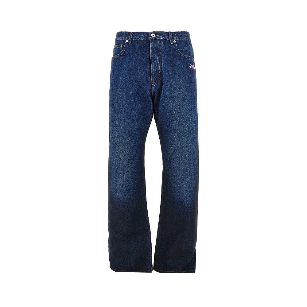Five-pocket jeans made from cotton denim, featuring spray print creating Diag motif at leg back. Logo embroidery on the left hip. Belt loops, buttons fly and button closure. Logo label at waist back. Relaxed fit with stright leg. DETAILS Model code: OMYA18JF25DEN001 Color code: 4410 Season: FW25 Material: 100% CO Made in: Italy Sku: 28800 Color: Blue Brand: OFF WHITE