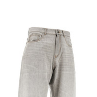 Five-pocket jeans made from Light Grey cotton denim with contrasting seams, featuring curved logo print at back. Loose and relaxed fit with dropped waist. Belt loops, zip fly and branded button closure. Leather logo patch at waist back. DETAILS Codice Modello: PMYA049F25DEN001 Stagione: FW25 Materiale: 100% CO Made in: Romania Sku: 24008 Brand: PALM ANGELS