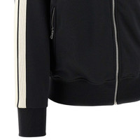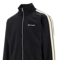 Track jacket made from techno jersey, featuring signature contrasting knitted bands on sleeves and shoulders. Lettering logo embroidery on the chest. Micro ribbed neck, cuffs and hem. Zip closure. Side welt pockets with zip closure. Regular fit. DETAILS Codice Modello: PMBD058C99FAB002 Stagione: SS25 Materiale: 100% PL Made in: Italy Sku: 18590 Brand: PALM ANGELS