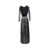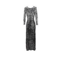 Long-sleeved ankle-length dress made from stretch jersey, enriched with all-over embroidered mirror sequins. Crewneck. Fitted silhouette with open back and self-tie lacing closure at back of neck. Lined. DETAILS Model code: 25HJRO263 Color code: P001 Season: FW25 Material: 90% CU, 10% EA Made in: Portugal Sku: 28919 Color: Black Brand: RABANNE