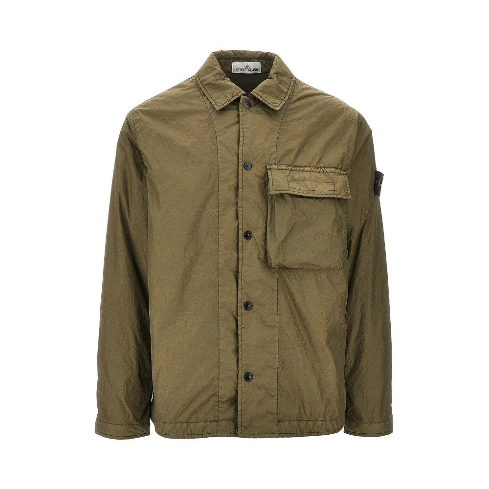 Shirt jacket made from lightweight garment-dyed recycled nylon reps, water and wind resistant, with PrimaLoft®-TC insulating padding. Press-studs closure, pointed collar, chest patch pocket with velcro flap, adjustable sleeves hem and signature logo badge on the left sleeve. DETAILS Model code: L1S151200002 Color code: V005G Season: SS26 Material: 100% PA Made in: Indonesia Sku: 31080 Color: Green Brand: STONE ISLAND